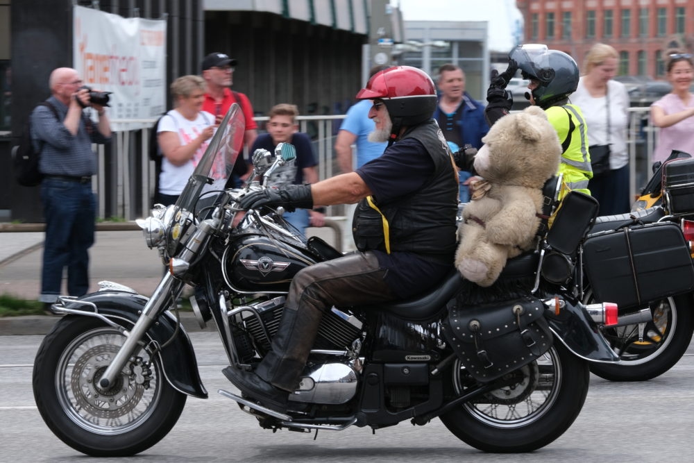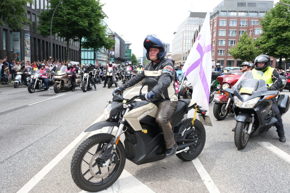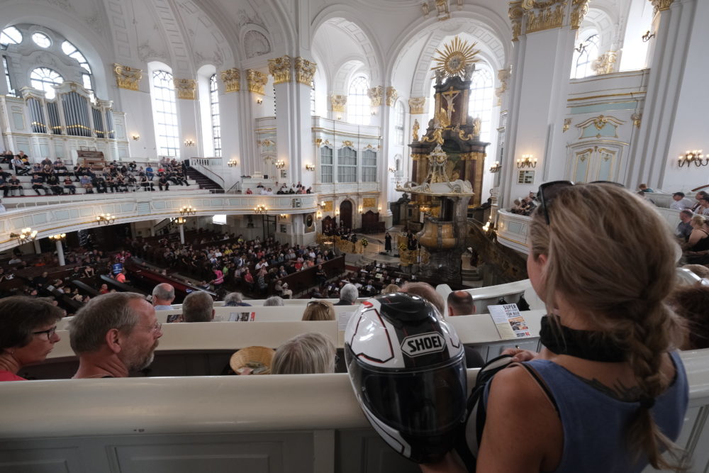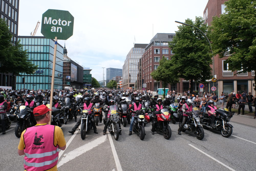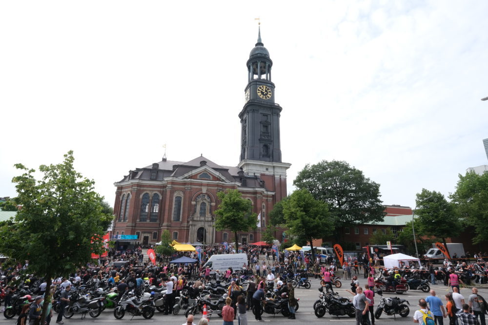 Hamburg . Rund 18.000 Biker haben nach Polizeiangaben am Sonntag am Motorradgottesdienst (Mogo) in Hamburg teilgenommen. Nach dem Gottesdienst am Michel startete gegen 13 Uhr der Konvoi über die Elbbrücken Richtung Buchholz (Nordheide), wo anschließend das Fest "Biker Träume Buchholz" gefeiert wurde. Der Hamburger Mogo ist weltweit die größte Veranstaltung ihrer Art.