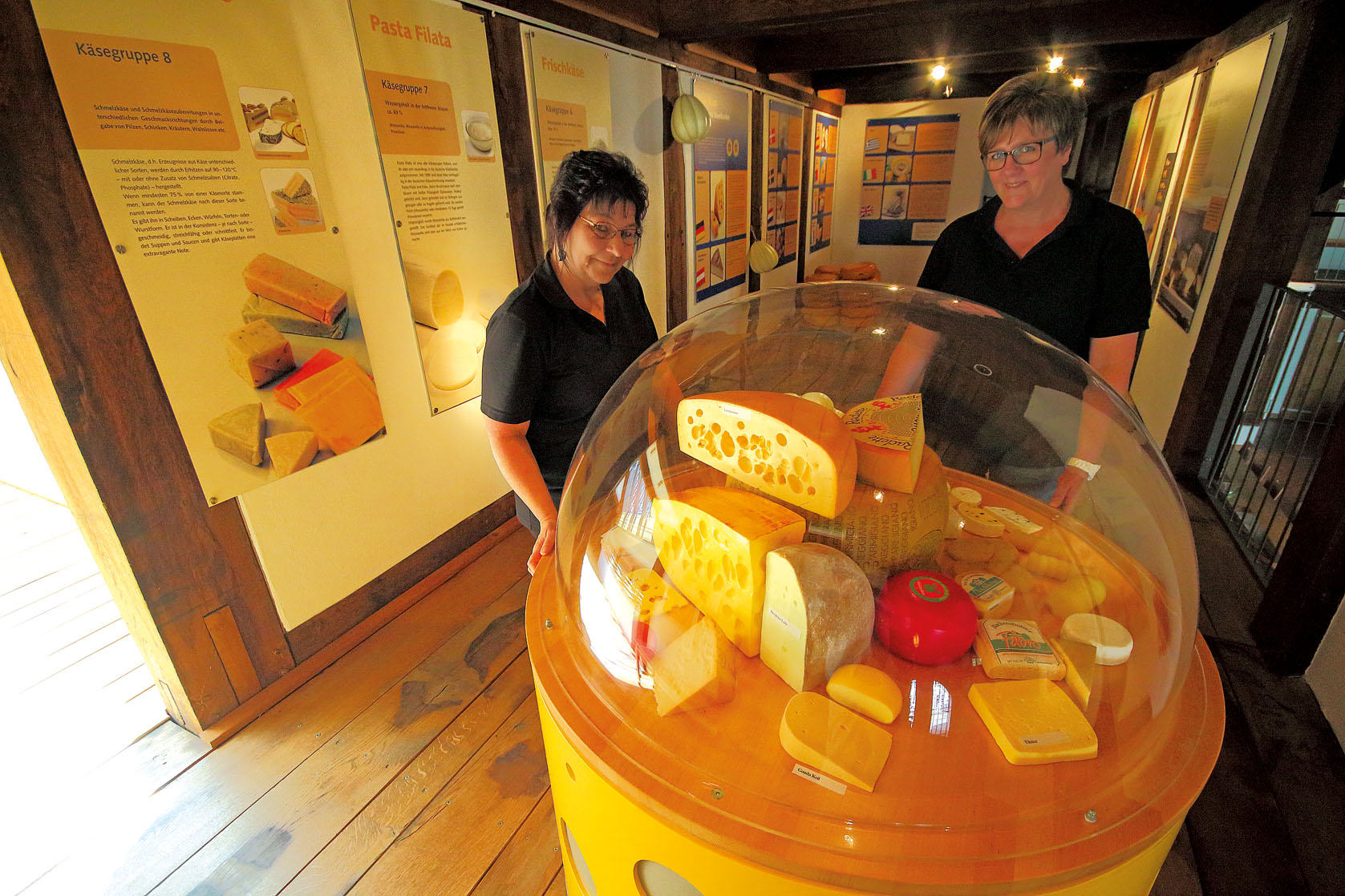 Hier im Käsemuseum trifft man nicht auf raffinierte technische Installationen oder Hightech. Seine Stärke ist die Anschaulichkeit: Fotos, Info-Tafeln, Filmvorführung und Alltagsgegenstände machen Herstellung und Geschichte des Käses anschaulich und begreifbar. So kann man etwa an einem Kuh-Modell das Melken üben. Das dürfte für die meisten Kinder, aber auch für Erwachsene eine völlig neue Erfahrung sein. Wenn die Kinder vom Käse irgendwann die Nase voll haben, lädt eine Spielecke – selbstverständlich als Bauernhof gestaltet – im Erdgeschoss dazu ein, die Aktivitäten zu verlagern.