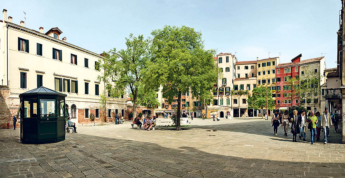Hier sieht Venedig etwas anders aus als am Canal Grande oder am Markusplatz. Die Fassaden strahlen nicht um die Wette, der Putz bröckelt. Andererseits stehen hier die höchsten Häuser der Lagunenstadt. Aber trotz der Touristen, die natürlich auch in diesen versteckten Winkel finden, scheinen hier die Uhren etwas langsamer zu ticken. Liegt es an der einst so besonderen Bedeutung dieses Ortes, an dem man eher nachdenklich als staunend innehält?