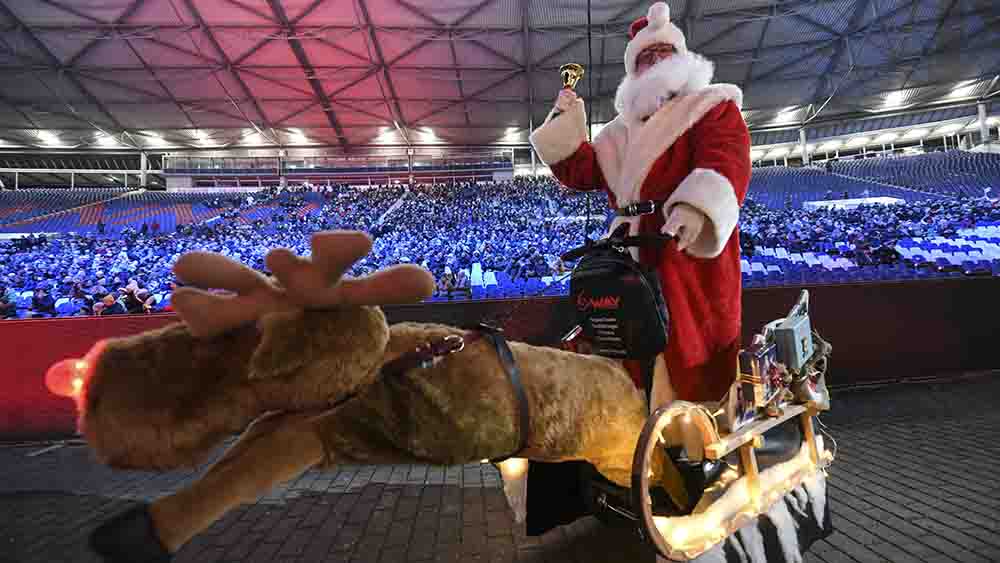Von „Jingle Bells“ bis „O du fröhliche“: Rund 7.000 Menschen haben sich beim ersten Stadionsingen in Hannover zu einem Mega-Chor vereint und weihnachtliche Hits angestimmt. Auf der Westtribüne der stimmungsvoll beleuchteten Arena am Maschsee, wo sonst der Fußballclub Hannover 96 spielt, sangen sie die bekanntesten Lieder der Adventszeit. Dabei durften auch „Rudolph, the Red-Nosed Reindeer“, „O Tannenbaum“ und „In der Weihnachtsbäckerei“ von Rolf Zuckowski nicht fehlen.