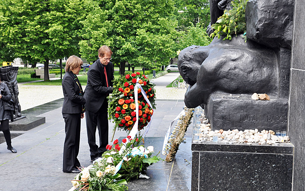 Gemeinsam mit Oberkirchenrat Ulrich Möller traf sich Präses Annette Kurschus mit Vertretern der Lutherischen Kirche in Polen unter Leitung von Bischof Jerzy Samiec sowie mit der reformierten Synodalpräsidentin Ewa Józwiak und weiteren Vertretern der Reformierten Kirche in Polen. Zum Abschluss der Begegnungen in Warschau legte Präses Kurschus für die Evangelische Kirche von Westfalen einen Kranz nieder am Denkmal für den jüdischen Widerstand gegen den deutschen Terror im Warschauer Ghetto 1943. UK