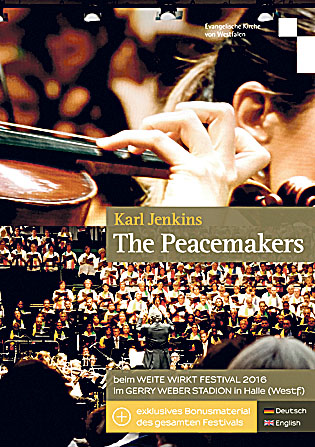 HALLE (WESTFALEN) – Eine Aufnahme des „Peacemakers“-Oratorium des britischen Komponisten Karl Jenkins, die beim ökumenischen „Weite wirkt“-Festival im vergangenen Mai in Halle (Westfalen) entstand, ist jetzt auf DVD erhältlich. Die rund 1000 mitwirkenden Sängerinnen und Sänger kamen aus 17 Chören aus dem Bereich der Evangelischen Kirche von Westfalen, verstärkt unter anderem vom südamerikanischen Libertas-Chor. Dessen Dirigent Johan de Villiers hat auch die Gesamtleitung der Aufführung. Außerdem waren die Nordwestdeutsche Philharmonie sowie die Sopranistin Linda Laible beteiligt.
