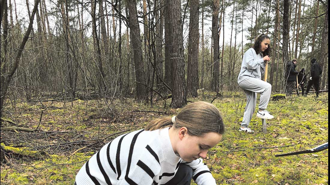 So fand vor einigen Tagen eine Baumpflanzaktion im Kirchenwald in Dahlewitz in Brandenburg statt. Förster Tobias Schramm begleitete zwei Schulklassen des Friedrich-Ebert-Gymnasiums an zwei Tagen. Gepflanzt wurden 900 Eichen in einem Kiefernwald – ein Schritt zum Umbau der Monokulturen. Helene (14 Jahre) sagte danach: „Bäume sind unsere Zukunft. Jetzt sind sie noch klein, doch in vielen Jahren ist dort, wo wir heute ge[1]pflanzt haben, wieder ein größeres Stück Wald. Ich finde es wichtig, dass wir Bäume pflanzen, weil wir jetzt etwas gegen den Klimawandel tun müssen.“ Greta (14 Jahre) sagt nach getaner Arbeit: „Es ist wichtig, seinen Teil gegen die Globale Erwärmung beizusteuern. Der Klimawandel passiert jetzt und wird uns, unsere Kinder und unsere Enkelkinder betreffen. Wenn nicht jetzt etwas tun, wann dann? Es fühlt sich gut an, zu wissen, dass wir etwas für das Klima getan haben.“