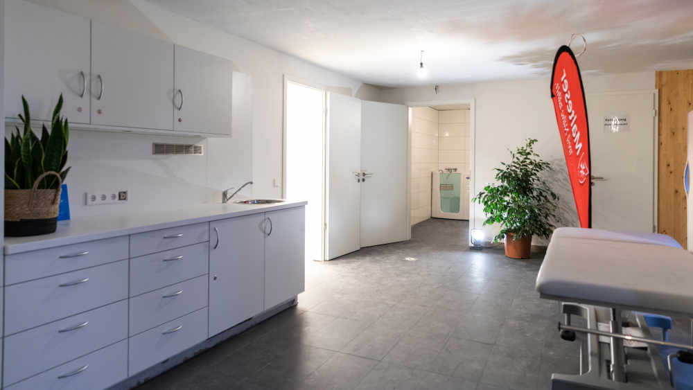 Funktionsräume im Inneren der Bahnhofsmission in Hamburg mit Erste-Hilfe- und Wasch-Möglichkeiten.