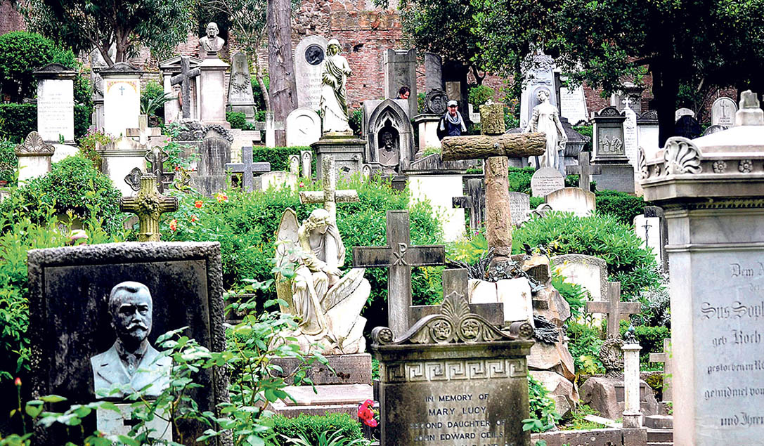 So erwuchs in 300 Jahren ein Ruhe- und Erinnerungsort für Denker und Dichter, Maler und Bildhauer, Schriftsteller, Ärzte und Gesandte. Hauptsächlich kamen sie aus Deutschland, Skandinavien und Großbritannien. Die Sonne des Südens übte schon damals eine große Faszination aus. Viele blieben bis an ihr Lebensende, andere wurden durch Krankheit oder auch Unfall vorzeitig aus dem Leben gerufen. Auch manche Hoffnung auf Heilung im milden mediterranen Klima erfüllt sich nicht. Ein Brite, dessen Grab zu den meistbesuchten des Friedhofs gehört, muss das bitter erleiden: John Keats, einer der bedeutendsten Lyriker der englischen Romantik. An Tuberkulose erkrankt, sucht der Poet im November 1820 in Rom Gesundung für sein Leiden. Doch das nasse Winterwetter in Rom bekommt ihm gar nicht gut. Sein Zustand verschlimmert sich und er stirbt im Februar 1821. Sein Sterbehaus im Zentrum Roms ist heute ein Museum.
