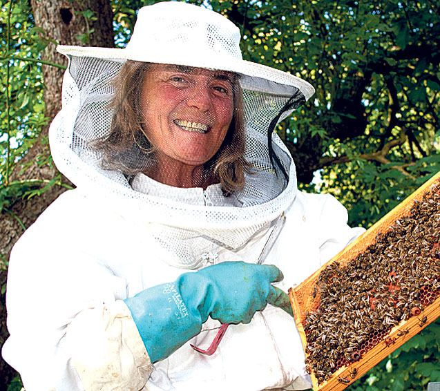 Mitten in Bielefeld, gleich hinter dem Arminia-Stadion, hat Bruna Boldrini ihr kleines Paradies: ein Stück Grabeland mit bunten Blumenbeeten, orangen Kürbissen, alten Bäumen – und mit drei rechteckigen Bienenstöcken. An diesem warmen Septembertag mischt sich das Geschrei der Fußballtrainer mit dem Summen Tausender Honigbienen, die eifrig hin und her fliegen und an den vielen Blüten Nektar sammeln.