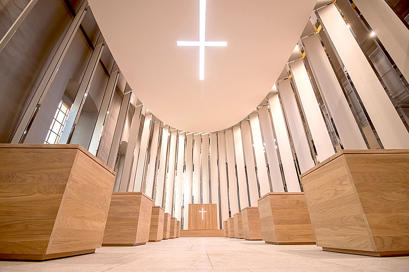 Der Gottesdienst findet in der Kapelle der Leuchtenburg statt. Sie gilt als die erste Porzellankirche und wurde vom Libeskind-Schüler Michael J. Brown im Inneren mit hängenden Porzellanlamellen gestaltet.