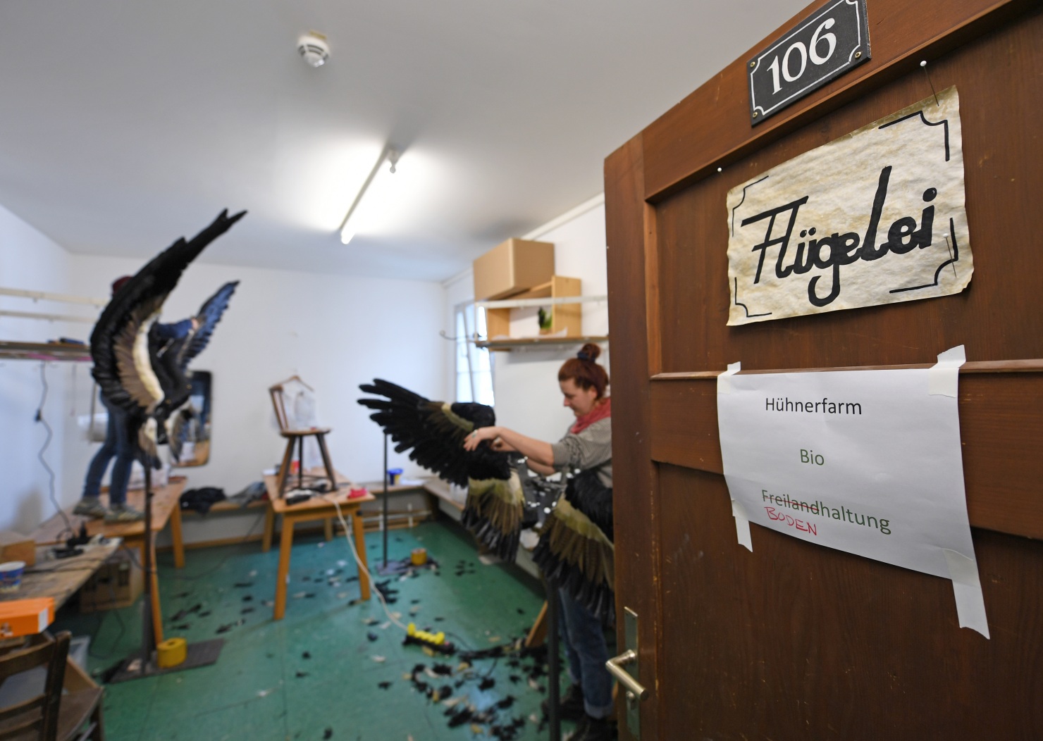 In der "Flügelei" nebenan wachsen aus Truthahnfedern mächtige Engelsschwingen für die biblischen Standbilder zwischen den Spielszenen. Viel Zeit ist nicht mehr: "Ende Februar muss alles fertig sein, denn ab 9. März werden drei Wochen lang die Fotos für den Bildband zum Spiel gemacht", erklärt Pressesprecher Frederik Mayet, der gleichzeitig Hauptdarsteller ist: Zum zweiten Mal spielt er die Rolle des Jesus.