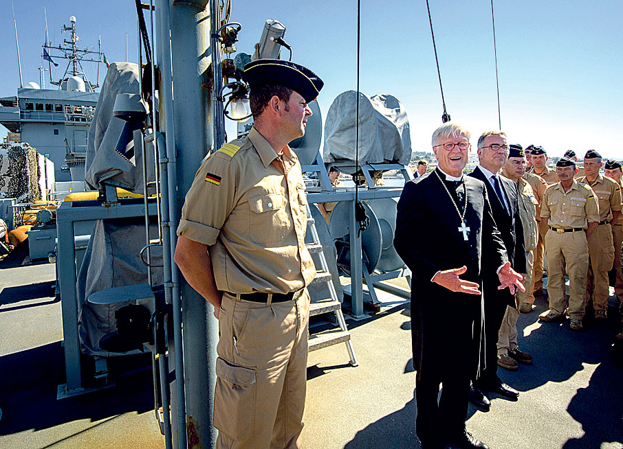 Militärbischof Rink verwies zudem auf die „hervorragende Arbeit der Militärseelsorger“ an Bord der Schiffe, denen es gelinge, ein vertrauensvolles Verhältnis zu vielen Soldaten aufzubauen. Für ihre Arbeit spreche auch, dass „wir uns nicht aufdrängen, sondern von Besatzungen hören, dass sie uns dabei haben wollen“. Die evangelische Militärseelsorge stellt in der Bundeswehr 98 Geistliche, die katholische 80.