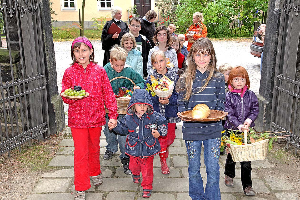 In der Kirche wird der Altar geschmückt mit Früchten, Gemüse, Blumen und Getreideähren. In manchen Gemeinden gibt es Prozessionen und aufwendig gestaltete Blumen- und Früchteteppiche (siehe Seite 13). In einigen Gegenden werden Erntekränze geflochten oder Erntekronen gebastelt.