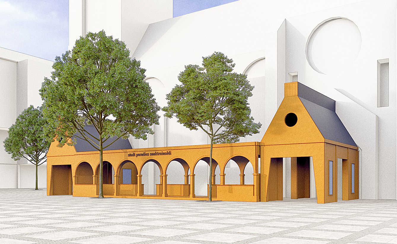 An der Südwand der historischen Kirche, zur Haupteinkaufsstraße Ostenhellweg hin, wird ein „Paradiesgarten“ entstehen – ein temporärer Anbau, der als Übergang von dem belebten Innenstadtplatz in den spirituellen Ruheraum der Kirche dienen soll. Dieser neue Übergang, so Michael Küstermann, Stadtkirchenpfarrer und Initiator dieses Projektes, nimmt auch das Konzept der Arbeit an der Stadtkirche auf, für den Dialog zwischen Kirche und Stadt immer wieder neue Formen zu entwickeln.