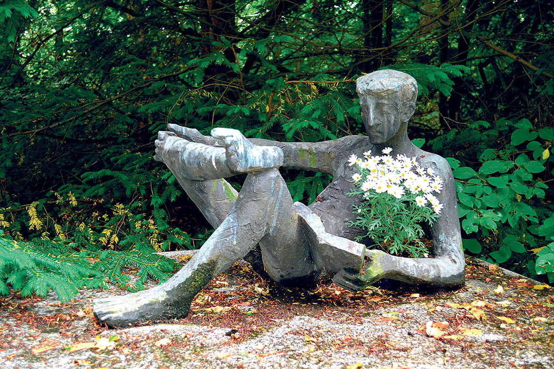 Grabskulpturen sind ständige Begleiter des Spaziergangs. Über dem Hamburger Gedächtnisfriedhof wacht eine weiße Christusstatue aus Marmor, man findet Hammonia mit Stadtkrone und Wappen, aber auch Merkur, den Gott der Kaufleute. Es gibt jede Menge flehende Jünglinge und trauernde Frauengestalten und noch mehr Engel. Letztere gibt es in so reicher Zahl, dass ihnen eine eigene Friedhofsführung gewidmet ist. Kunst gewordene Trauer: Die Begräbnisstätte in Ohlsdorf ist auch ein Skulpturenpark.