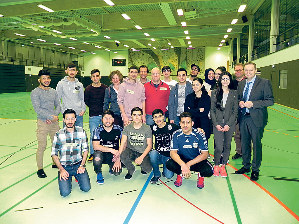 DETMOLD – Sie lachen, kugeln sich auf dem Boden, haben Spaß – etwa 20 junge Leute aus aller Welt, aus Polen, Irak, Iran, Türkei, Afghanistan, Bangladesch oder aus Armenien. Da gibt es Pawel, Asra oder Melissa, Rokhsar oder Safiullah, und viele teilen das gleiche Schicksal. Sie sind Geflüchtete im Alter von 15 bis 20 Jahren, mit Familie oder unbegleitet in Deutschland. Alle versuchen, hier Fuß zu fassen – die Schule abzuschließen, eine Ausbildung anzufangen, sich ein Leben aufzubauen. Dabei will ihnen das sogenannte Respekttraining im Sportzentrum des Dietrich-Bonhoeffer-Berufskollegs (DBB) helfen, eine Kooperation des DBB mit der Lippischen Landeskirche, deren Diakoniereferat die Kosten des Projekts trägt.