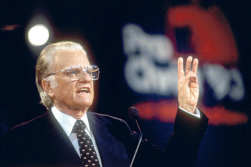 Die Welt sei voller Sünde, der Mensch fühle eine Leere, die nur Jesus Christus füllen könne, war Grahams Mantra. Seine Evangelisationen endeten immer nach demselben Muster: „Kommt nach vorne“, rief er, „und bekehrt euch“. Und immer wieder kamen sie, in Football-Stadien, Kirchen oder vor dem Bildschirm im Wohnzimmer. Der Prediger wurde auch das „Maschinengewehr Gottes“ genannt.