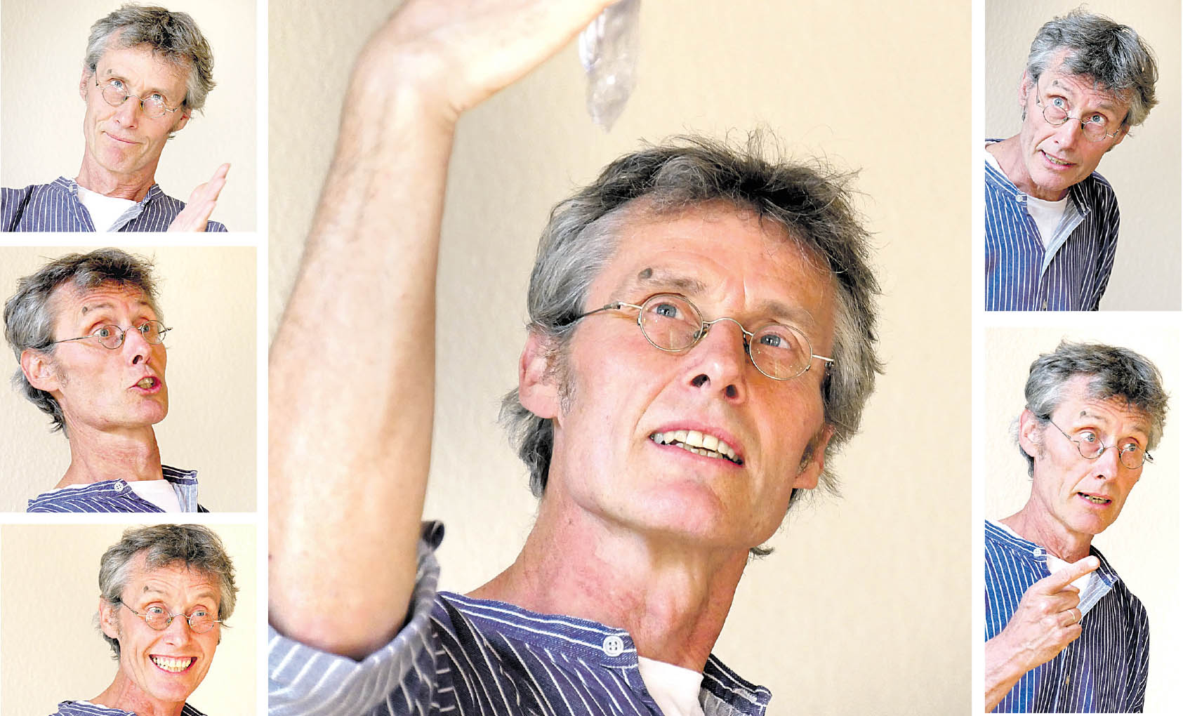 Aber entscheidend sind natürlich Stimme und Gestik. „Die Melodie der Sprache und der Stimme sind das A&O. Die Stimme und mein Körper sind mein Instrument“, weiß der Profi und bespielt daher die komplette Stimm-Klaviatur: Mal flüstert er nur, dann wird er wieder lauter, spricht langsam und bedächtig, doch schon im nächsten Moment reiht er die Wörter rasant galoppierend aneinander, um dem so Gesagten gestenreich eine unwahrscheinliche Dynamik und Geschwindigkeit zu verleihen.