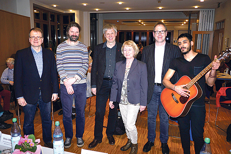Unter der Moderation von Bildungsreferentin Monika Korbach und Pfarrer Dieter Bökemeier diskutierten der Soziologe Andreas Kemper (Universität Münster), Lutz Krügener, Beauftragter für Friedensarbeit der evangelisch-lutherischen Landeskirche Hannovers, und Claus Wagner, Beauftragter der Lippischen Landeskirche für politischen Extremismus. Der aus dem Iran geflüchtete afghanische Musiker Erfan Amiri (23) aus Lage umrahmte die Veranstaltung mit eigenen Liedern auf Persisch, die er mit Gitarre begleitete.