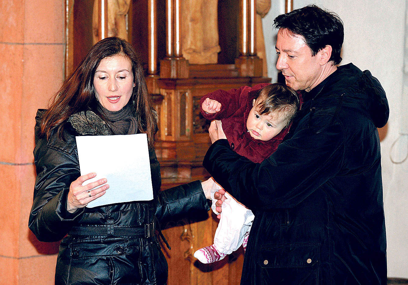 Taufe. Gerade ist die Patentante dran mit einem selbst geschriebenen Wunsch: „Sei ehrgeizig, aber nicht verbissen, sei clever und gerissen, finde deine Leidenschaft und verfolge diese mit aller Kraft“, spricht sie dem Täufling am Taufbecken zu.