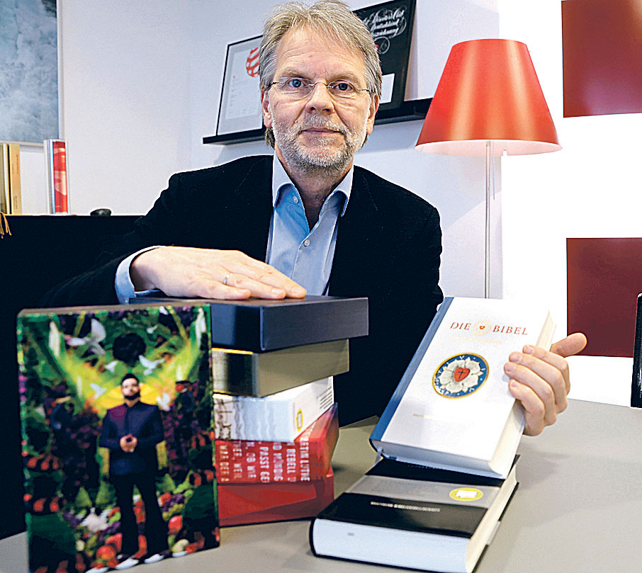 Und da setzte Wolfram Heidenreich mit seinem Team auf ungewöhnliche Namen: „Wir haben gerade Menschen angesprochen, die man sonst nicht unbedingt mit dem Stichwort Bibel in Verbindung bringt.“ Zu ihnen gehören Fußballtrainer Jürgen Klopp, Scorpions-Sänger Klaus Meine, Schauspielerin Uschi Glas, Jazz- Musiker Wolfgang Dauner, Margot Käßmann, Botschafterin für das Reformationsjubiläum, der Vorsitzende des Rates der Evangelischen Kirche in Deutschland Heinrich Bedford-Strohm oder auch der exzentrische Designer Harald Glööckler. Der findet durchaus einen überraschenden Ansatz: „Liebe gibt, Liebe fordert nicht“, sagt er. „Der, der glaubt, bekommt“. Die Bibel sei für ihn die Quelle fürs Leben.