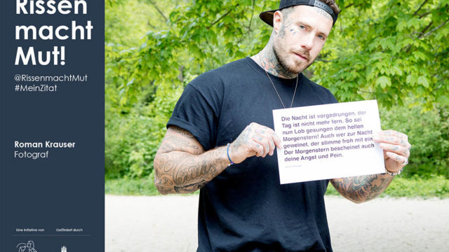„Es hat mich immer sehr interessiert, wer welche Sprüche aussucht“, sagt Stäbler. Etwa ein Drittel der Fotografierten wählte christliche Texte. Ein stark tätowierter junger Mann entschied sich zum Beispiel für einen Text von Jochen Klepper. Von dem Dichter hatte er noch nie gehört, aber die Worte sprachen ihn an.
