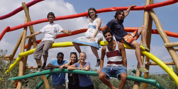 Zurück fliegen wir mit „Up“, einer Tochter von El Al, weil wir sicher gehen wollen, dass der Flug auch stattfindet. Bei der Security vor dem Einchecken registriert der junge Kontrolleur die blauen T-Shirts vom BustanNofMeshutaf. Er fragt, was sie zu bedeuten haben. Wir erklären, dass wir in einem Projekt mit jüdischen und arabischen Israelis einen Spielplatz bauten. Er reagiert hoch erfreut auf unsere Arbeit, weil er in diesem Land weiter leben will und das seiner Meinung nach nur möglich ist, wenn Juden und Araber einen gemeinsamen Weg finden.