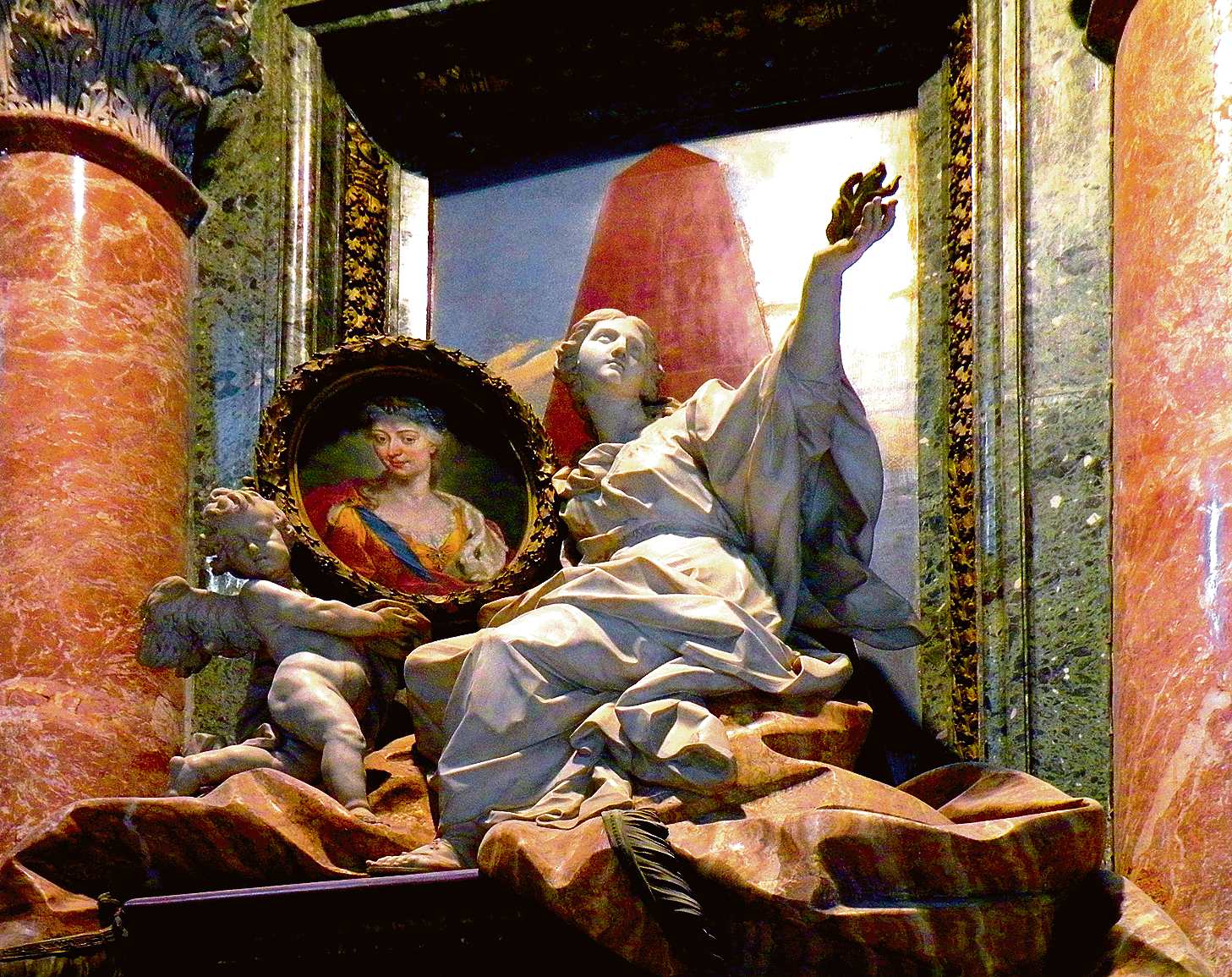 Und schließlich die vierte, Maria Clementina Stuart (1702-1735): die mit dem „traurigsten Schicksal, aber dem schönsten Grabmal“ (Schad). Die polnische Prinzessin ehelicht den aus England verjagten James III.. Aus der Verbindung gehen zwei Söhne hervor, doch sie steht unter keinem guten Stern. Zweimal flieht Maria Clementina ins Kloster, unterlegen im Streit mit ihrem Gatten um die rechte Erziehung der Kinder. Kränkelnd stirbt sie, gerade mal 32 Jahre alt. Die Trauerfeier gerät so bombastisch, als wäre ein Papst gestorben. „Bei ihrem Tod weinten die Augäpfel der katholischen Kirche“, heißt es in einem Nachruf auf die letzte katholische englische Titularkönigin.