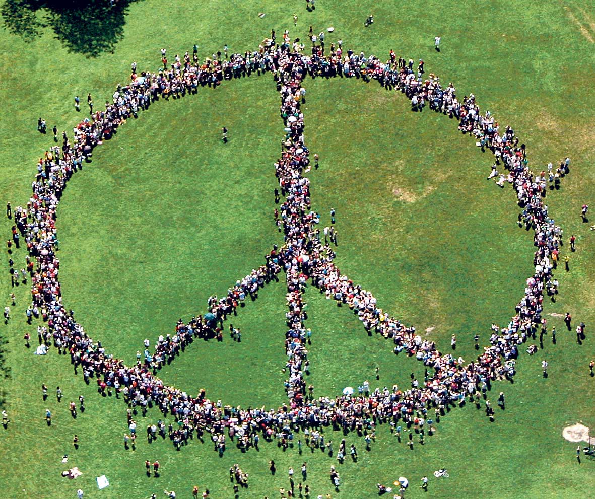Die weiße Taube, die Regenbogen-Flagge und der Ölzweig – alles Symbole für den Frieden. Ebenso das „Peace-Zeichen“ – vor 60 Jahren erfand es der britische Grafiker Gerald Holtom
