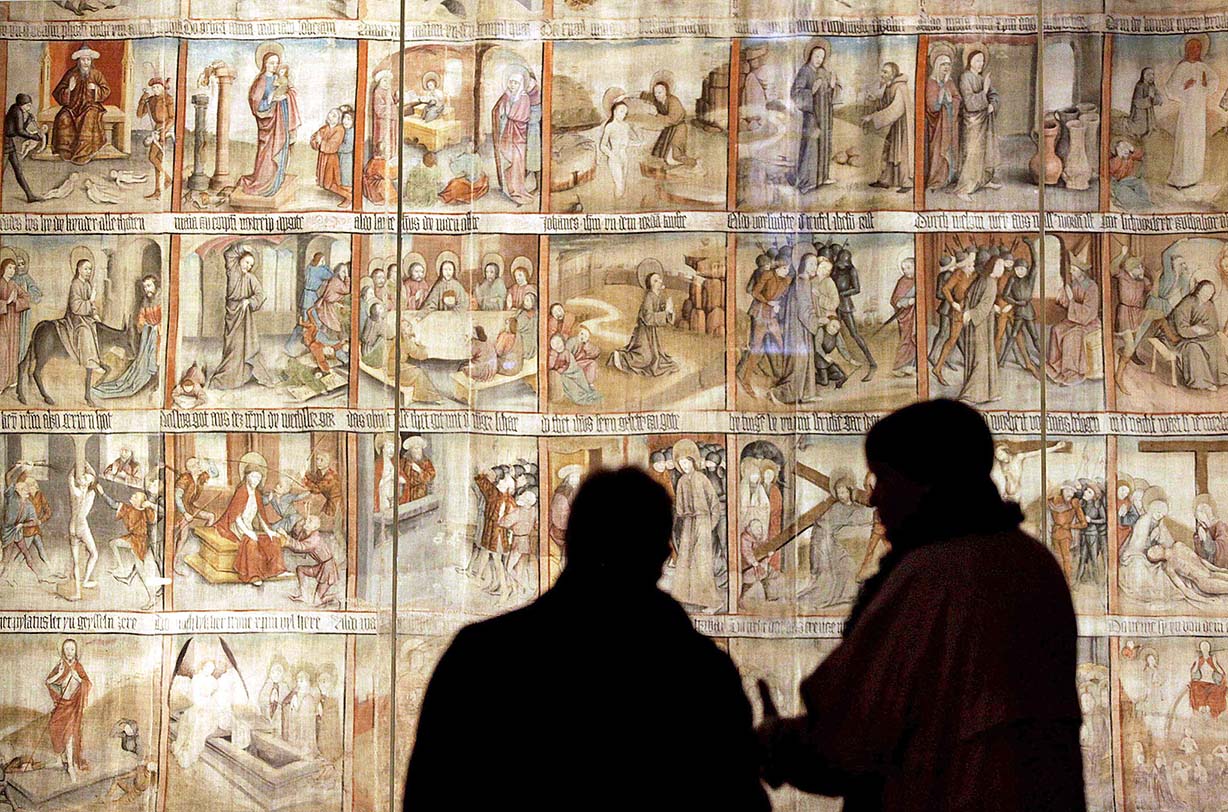 Seit seiner Restaurierung durch eine schweizerische Stiftung wird das „Große Fastentuch“ in der – laut Guinness Buch der Rekorde – „größten Museumsvitrine der Welt“ präsentiert. Sie befindet sich in der heute entweihten Kirche zum Heiligen Kreuz. Mit einer Höhe von 8,20 Metern und einer Breite von 6,80 Metern ist es eine einzigartige Bilderbibel mit Szenen aus dem Alten und Neuen Testament. „Das Einmalige ist die Beschriftung unseres Tuches in deutscher Sprache – 50 Jahre vor der Reformation“, stellt Mente heraus.