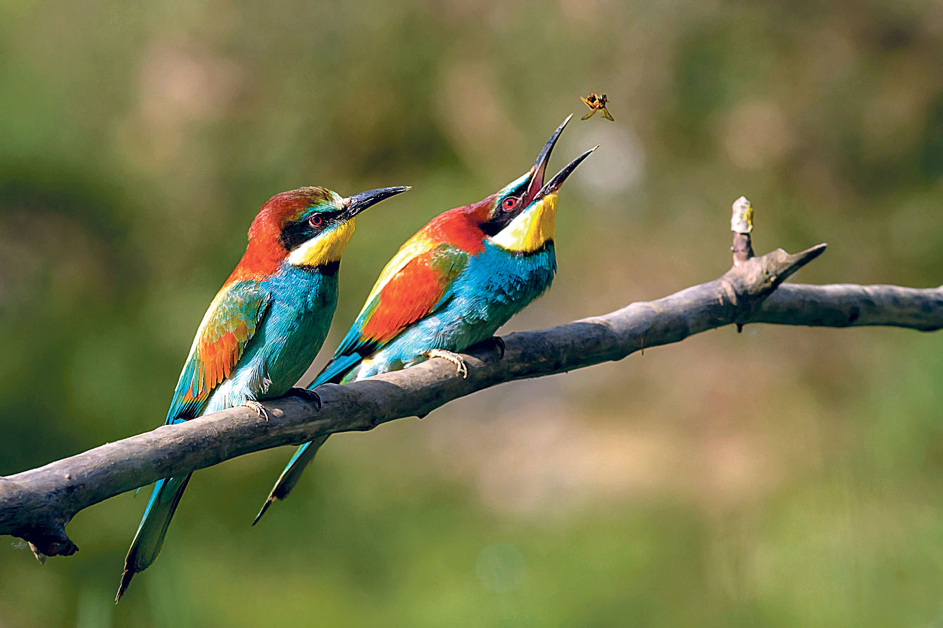 Im Mai kehren diese Exoten nach Deutschland zurück. Sie sind etwa amselgroß und bunt wie Papageien. Der Schnabel ist lang, dünn und gebogen – gut für Insektenfresser. Sie fangen die Tiere von einer Warte aus in der Luft und, zum Ärger der Imker, manchmal auch Bienen direkt am Stock. Deren Giftdrüsen drücken sie auf einem Zweig aus, bevor sie die Insekten an ihre Jungen verfüttern.