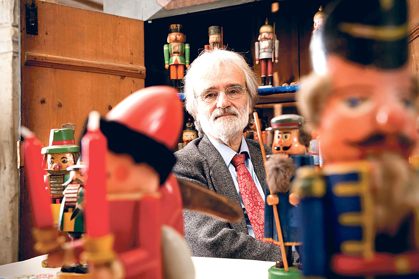 Umso stolzer ist der jetzt in Unterfranken lebende Sammler über seine seltenen Objekte aus dem 16. Jahrhundert. Dazu zählt der Hebelnussknacker aus Eisen, die filigran mit Messing verziert sind. Ein weiterer Schatz in Heidenreichs Besitz ist ein Pilger aus Santiago de Compostela von 1760, der die Jakobsmuschel am Hut und Flicken an seiner Kleidung trägt – und natürlich den Mund für die Nuss weit öffnet. Auch der Zangen- und Patentnussknacker überzeugt mit seiner Einzigartigkeit: Er kann gleichzeitig kleine Haselnüsse und große Walnüsse öffnen.