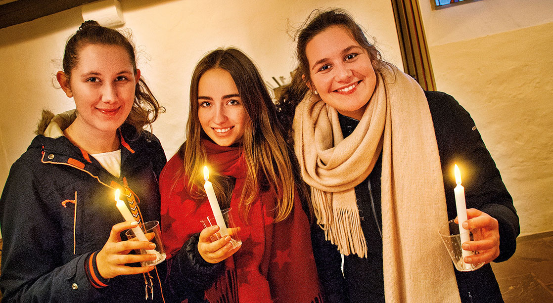 So ziehen sie weiter von Station zu Station. Zuletzt geht es in die St. Stephanskirche. Dort gibt es am Eingang für jeden Besucher eine Kerze, die Jungen legen das Kreuz im Altarraum auf den Boden. Einige Jugendliche legen Knicklichter darum herum. Nach Lesungen und Lied dürfen alle ihre Kerze nach vorn zum Kreuz bringen und sich dafür ein Knicklicht mitnehmen – als Zeichen dafür, dass Jesus Licht in ihr Leben bringt. Als Zeichen dafür, dass es mit der Kreuzigung nicht zu Ende ist. Knicklichter sind eine Art Leuchtstab. Gefüllt mit einer chemischen Substanz leuchten sie, nachdem man sie einmal leicht knickt.
