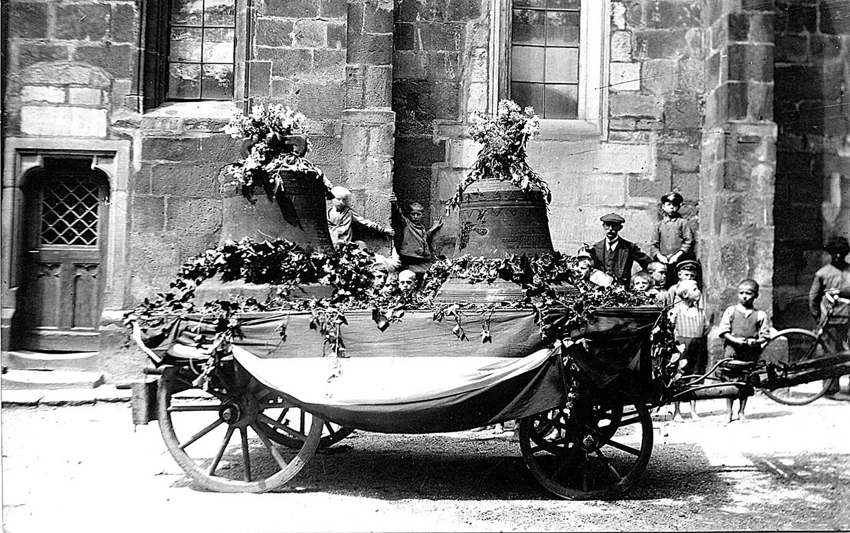 Anfangs hatten die Deutschen Zinnkrüge und Messingpfannen im patriotischen Taumel noch freiwillig abgegeben. Doch je länger die Materialschlachten des Ersten Weltkriegs andauerten, umso stärker gierte die Rüstungsindustrie nach den knapper werdenden Rohstoffen. Schließlich ordnete das Berliner Kriegsministerium im Frühjahr 1917 an, Metall zwangsweise einzuziehen. Im Laufe der Aktion, die vor 100 Jahren anlief, wurde rund die Hälfte aller deutschen Kirchenglocken aus den Türmen abgehängt und eingeschmolzen. „Ein sinnloses Zerstörungswerk von unglaublicher, kaum fassbarer Dimension“, urteilte Kurt Kramer in seinem Buch zur Kulturgeschichte der Glocke.