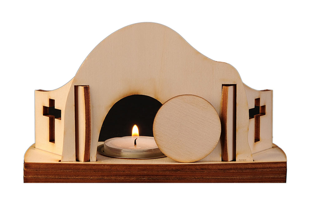 Der Stein ist zur Seite gerollt, das Grab ist leer, dahinter leuchtet uns der neue Morgen entgegen. Es ist Ostern, und Er ist wahrhaft auferstanden. Diese Osterkrippe erinnert uns daran, wie dicht Sünde und Vergebung, Trauer und Auferstehung, Schatten und Licht beieinander liegen. Feiern Sie die freudige Osterbotschaft auch Zuhause oder mit kleineren Andachten.