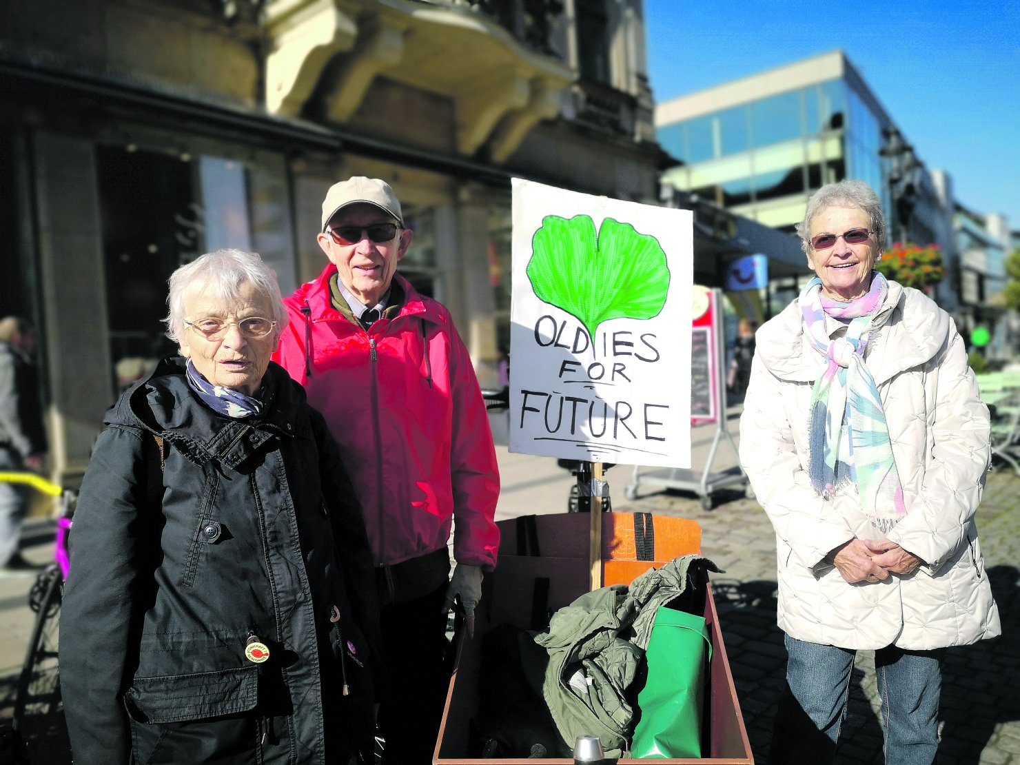 Immer dabei: Der Pfarrer im Ruhestand Erhard Wiechmann (85) mit seiner Frau Leni (83) und die „Oldies for Future“-Gründerin Klara Ahlert. Letztere vertritt ihre Positionen sogar im Fernsehen – etwa vergangenen Sonntagabend als Gast in Günther Jauchs Jahresrückblick.