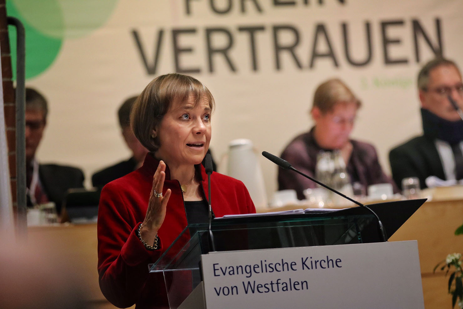 Auch für die Kirche und den Glauben seien Fremdheit und Vertrauen „hochaktuelle Begriffe“. Kirchenintern diagnostizierte Kurschus ein gestörtes Vertrauen etwa in den Spannungen zwischen den verschiedenen kirchlichen Berufsgruppen und zwischen den verschiedenen Leitungsebenen Gemeinden, Kirchenkreise und Landeskirche. Nach außen habe die Kirche besonders viel Vertrauen durch die Frage des sexuellen Missbrauchs verloren. „Die Erschütterungen und der massive Verlust von Vertrauen, die durch sexualisierte Gewalt entstehen, sind zuerst für die betroffenen Menschen und deren Familien und dann auch für die Kirche als ,Vertrauensraum‘ ein Schaden mit verheerenden Wirkungen“, so die Präses. Auch in der westfälischen Kirche müsse bei diesem Problem noch aufmerksamer hingeschaut und noch konsequenter gehandelt werden, sagte Kurschus unter dem Beifall der Synodalen.