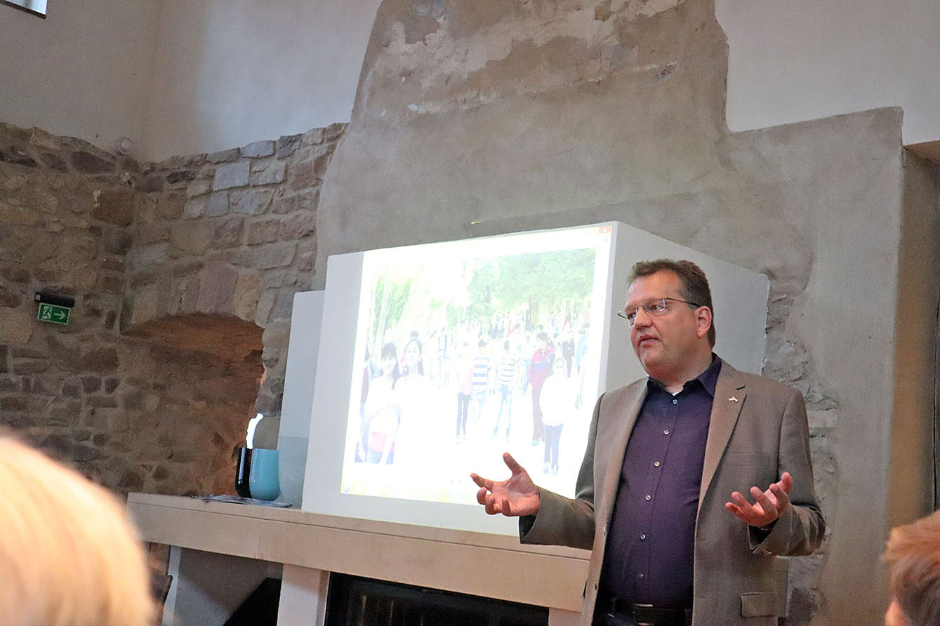 Drei Ausnahmen nannte Gräbe, in denen die Angehörigen verschiedener Religionen auch in den Ländern des Nahen Ostens gemeinsame Räume und Interessen teilen: den Markt, die Krankenhäuser und die Schulen. Einblicke in die Arbeit der Schneller-Schulen bildeten daher den Abschluss von Gräbes Vortrag.