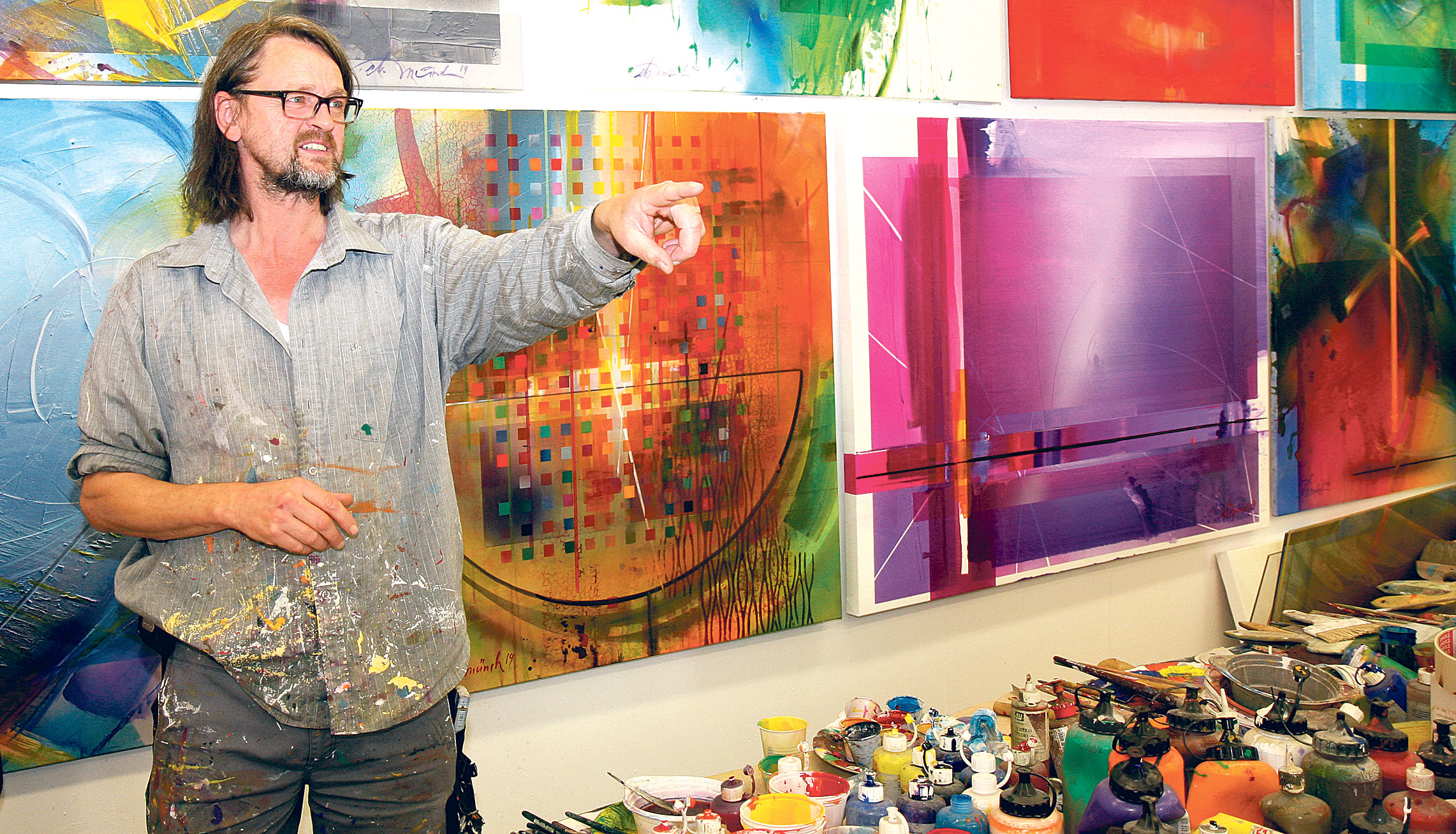 Etwa zwei Monate im Jahr sind für den Künstler eine besondere Zeit der Inspiration. Die hält er sich frei für neue Ideen und kreatives malerisches Schaffen – konzentriert und mit Kraft, die in dem Moment liegt. Münch: „Es geschieht einfach. Ich male. Gequält darf man nichts machen.“