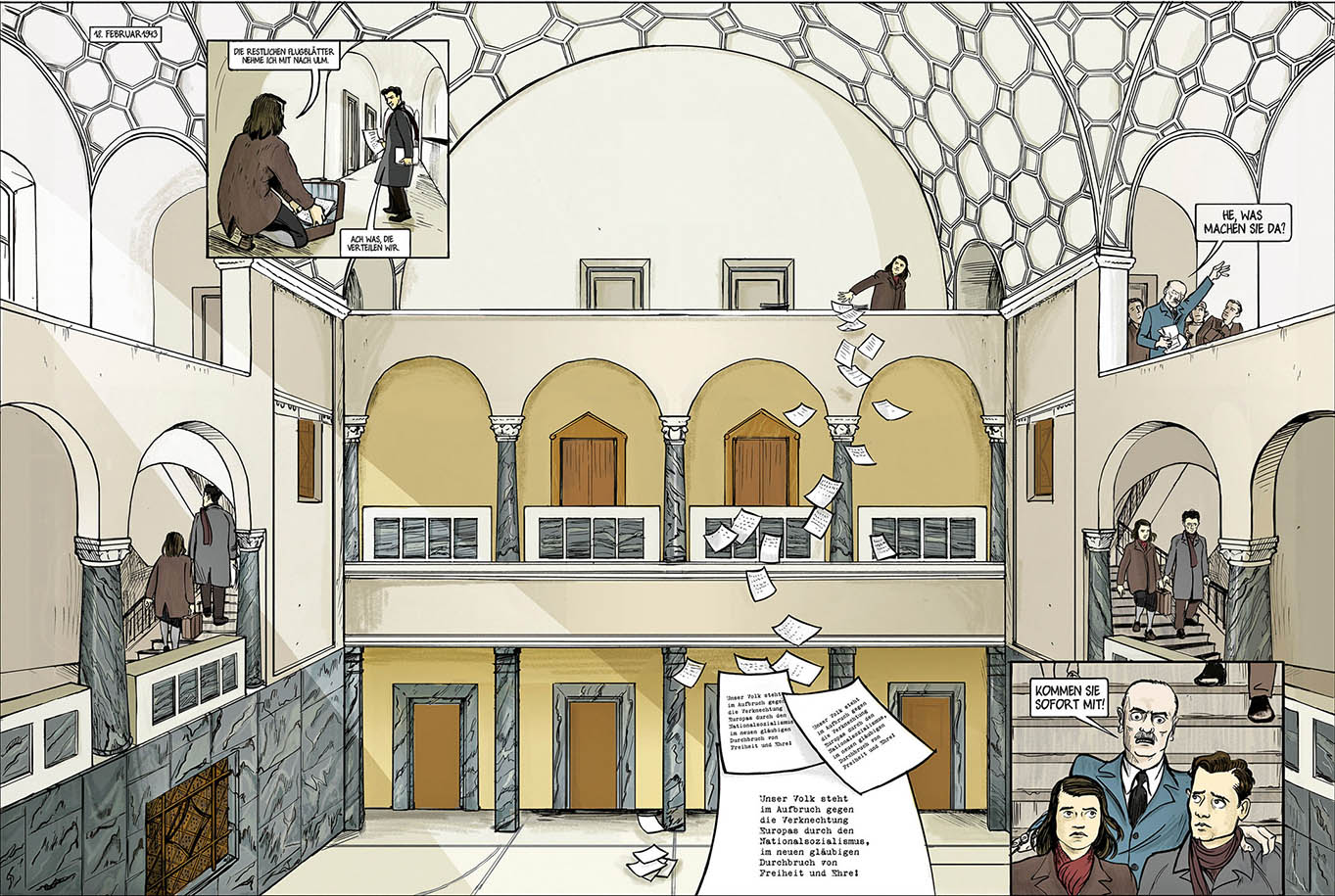 Nein. Man konnte die unmittelbare Wirkung zwar nicht messen, aber man kann davon ausgehen, dass die Flugblätter der „Weißen Rose“ und von anderen Gruppierungen überhaupt keine Wirkung hatten – schon gar nicht von denen, die dann Sophie Scholl im Lichthof der Universität von der Brüstung geworfen hat. Die Empfänger haben diese Blätter nicht wie gehofft mit Zustimmung in ihrem Bekanntenkreis verbreitet, sondern sie haben sie zur Polizei getragen, aus Angst, dass man sie damit identifizieren könnte. Die Hoffnung, dass sich das Volk der Regierung verweigert und Soldaten Fahnenflucht begehen, ist bis zum Schluss des NS-Regimes nicht eingetreten.