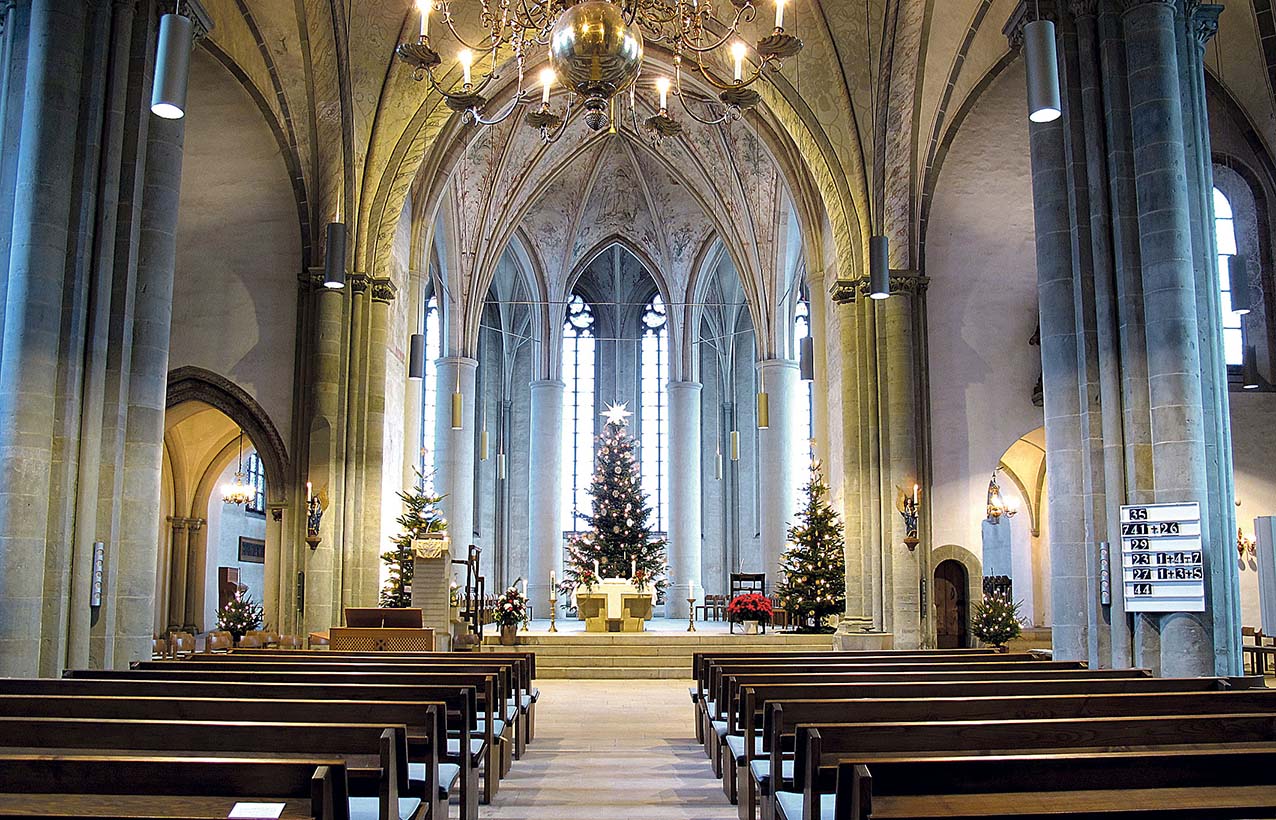 Außerdem werden Kerzenständer mit Kerzen im Kirchenschiff aufgestellt. Auch die Kerzenhalter an der Wand bekommen Kerzen. „Die brennen nur an Weihnachten“, berichtet Hess.