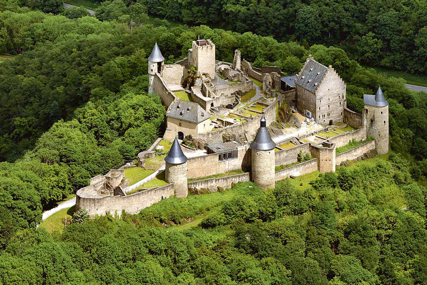 Zu sehen sind Burgen von internationaler Bedeutung wie Vianden in Luxemburg oder das Chateau de Malbrouck im lothringischen Manderen. Von insgesamt sechs ausgewählten, heute kaum noch erhaltenen Anlagen, wie Schloss La Fontaine in Luxemburg, Schloss Karlsberg oder Burg Alt-Montclair, werden großformatige fotorealistische Computer-Rekonstruktionen gezeigt.