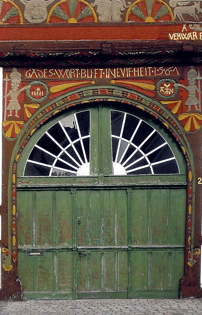Auch in der Reformationszeit gab es dieses „Flagge zeigen“ – zwar nicht auf bunten Tüchern, dafür aber mit holzgeschnitzten Inschriften über der eigenen Haustür. Wer zu welchem „Verein“ gehörte, protestantisch oder katholisch, ließ sich so auf den ersten Blick erkennen. Zum Beispiel in der Innenstadt von Wiedenbrück mit ihren außergewöhnlich gut erhaltenen Fachwerkhäusern aus dem 16. und 17. Jahrhundert.