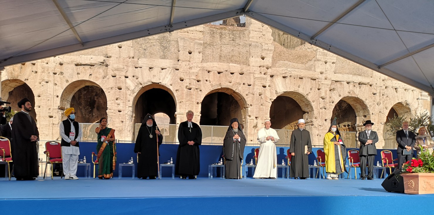 Ein buntes Bild für den Frieden: Bei einem interreligiösen Friedenstreffen der Gemeinschaft Sant‘Egidio kamen in Rom Religionsführer und Politiker aus aller Welt zusammen. Männer und einige wenige Frauen in den Gewändern ihrer jeweiligen Glaubensgemeinschaft stellten sich für ein Foto auf um zu zeigen: Gutes, friedliches Leben auf dieser Erde ist möglich – auch da, wo scheinbar zunächst Gegensätze dominieren. Und die Religionen stehen für diese weltweite Gemeinschaft.