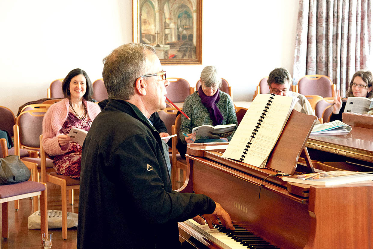 HERFORD – Konzentrierte Atmosphäre im Münster-Gemeindehaus in Herford: Zwölf Chorleiterinnen und Chorleiter haben die Plätze getauscht. Diesmal sitzen nicht sie vorn am Klavier, sondern Johan de Villiers, Dirigent des Libertas-Chors aus Südafrika. In einer Mischung von Englisch und Deutsch arbeiten sich die Musiker durch die Noten des Oratoriums „The Peacemakers“.