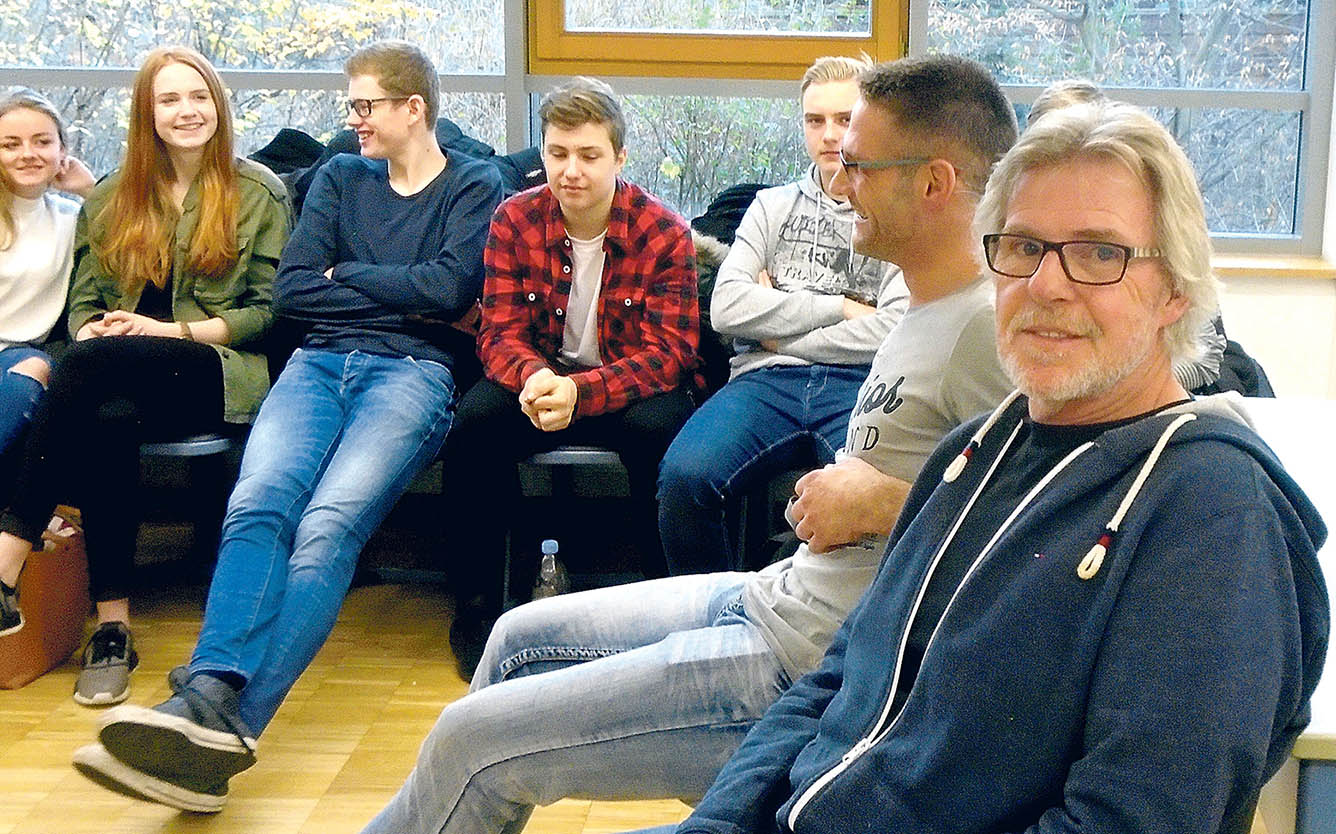 Nach etwa einer Stunde lehnt sich Günter Philipps auf seinem Klassenstuhl zurück. „Das waren jetzt unsere Lebensgeschichten“, sagt er. „Wer von Euch hat denn eigene Erfahrungen mit Alkohol, oder auch Drogen?“