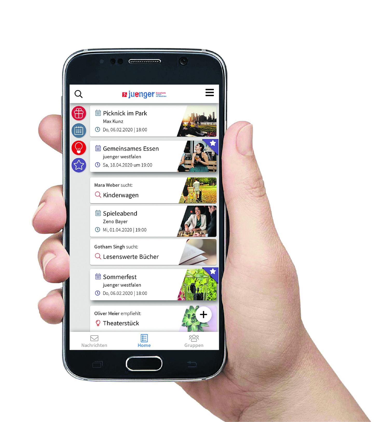 Aktuell sind im Play- und Appstore bereits die Apps der Evangelischen Jugenden Iserlohn (Juenger Iserlohn), Minden (juenger unterwegs), Hattingen-Witten (Juenger HaWi), Recklinghausen (juenger Recklinghausen), Herne (juenger herne), Paderborn (juengerPaderborn) und Vlotho (Juenger Vlotho) zu finden.
