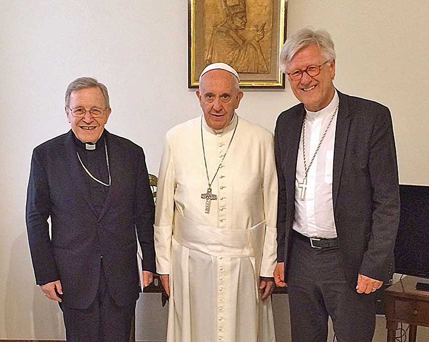 Die persönliche Begegnung des EKD-Ratsvorsitzenden mit dem Papst fand im Gästehaus Santa Marta statt, wo Franziskus wohnt. An dem Gespräch nahm auch der deutsche Kurienkardinal Walter Kasper teil. Es war das erste Zusammentreffen der beiden Kirchenführer. Es sei von „großer Herzlichkeit und spontaner Nähe“ geprägt gewesen, schrieb der EKD-Ratschef im Anschluss auf seiner Facebook-Seite. Die Begegnung, bei der Franziskus zeitweise auch Deutsch gesprochen habe, bezeichnete er als herzlich, unkompliziert und frei von jeder Rangordnung. „Wir sind uns begegnet, wie sich Brüder begegnen.“