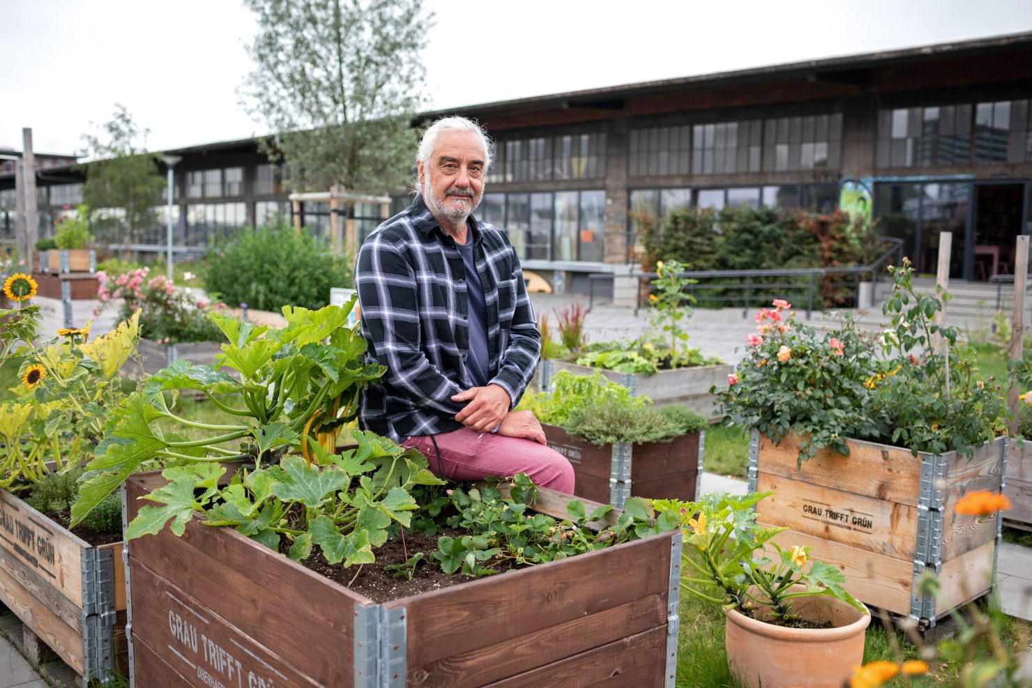 An einer der vorderen Holzboxen stehen Marita Krempl und Jürgen Lohfink. «Mit unseren Boxen wollen wir die Natur zurück in die Stadt holen», sagt Lohfink. Der große weißhaarige Mann mit dem wettergegerbten Gesicht ist Betriebsstättenleiter von «Grau trifft Grün». Die Käufer dieser kleinen «mobilen Gärten» sind Privatleute