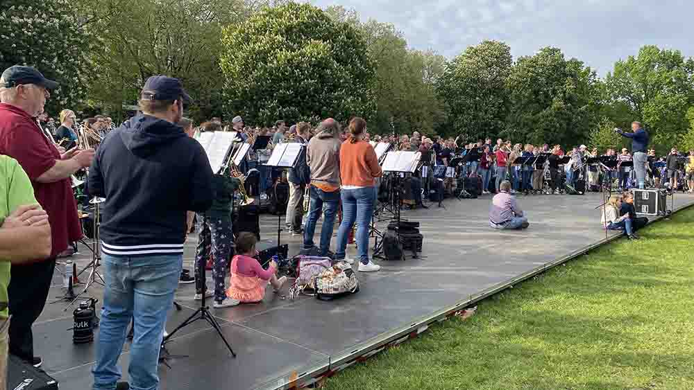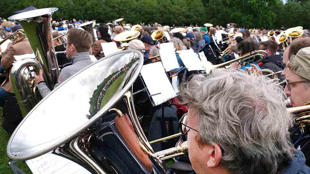 Rund 17.000 Blechblasbegeisterte hatten sich auf der Wiese am Stadtparksee versammelt