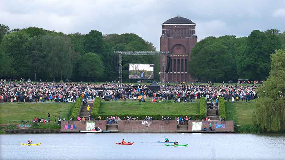 Im Hamburger Stadtpark treffen sich Tausende zum Schlussgottesdienst Foto: epdbild / Stephan Wallocha