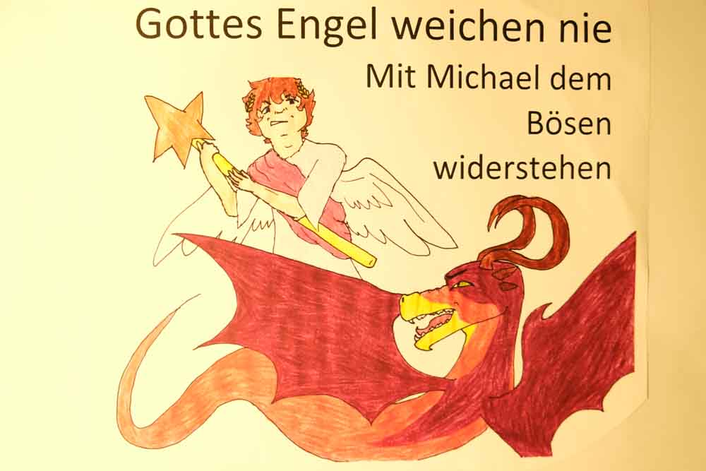 Schon seit Januar bereitet der Arbeitskreis den Tag vor. Diakon Austein zur Seite steht ein Team von ehrenamtlichen Mitarbeitern. Die Grundlage für ihre Arbeit war Kapitel 12 der Offenbarung des Johannes. Es handelt vom Kampf des Erzengels Michael und seiner Engel im Himmel gegen den siebenköpfigen Drachen und dessen Engel. Der Drache wird darin auch als Schlange und Teufel bezeichnet. Aber Michael und die Seinen gewinnen den Kampf.