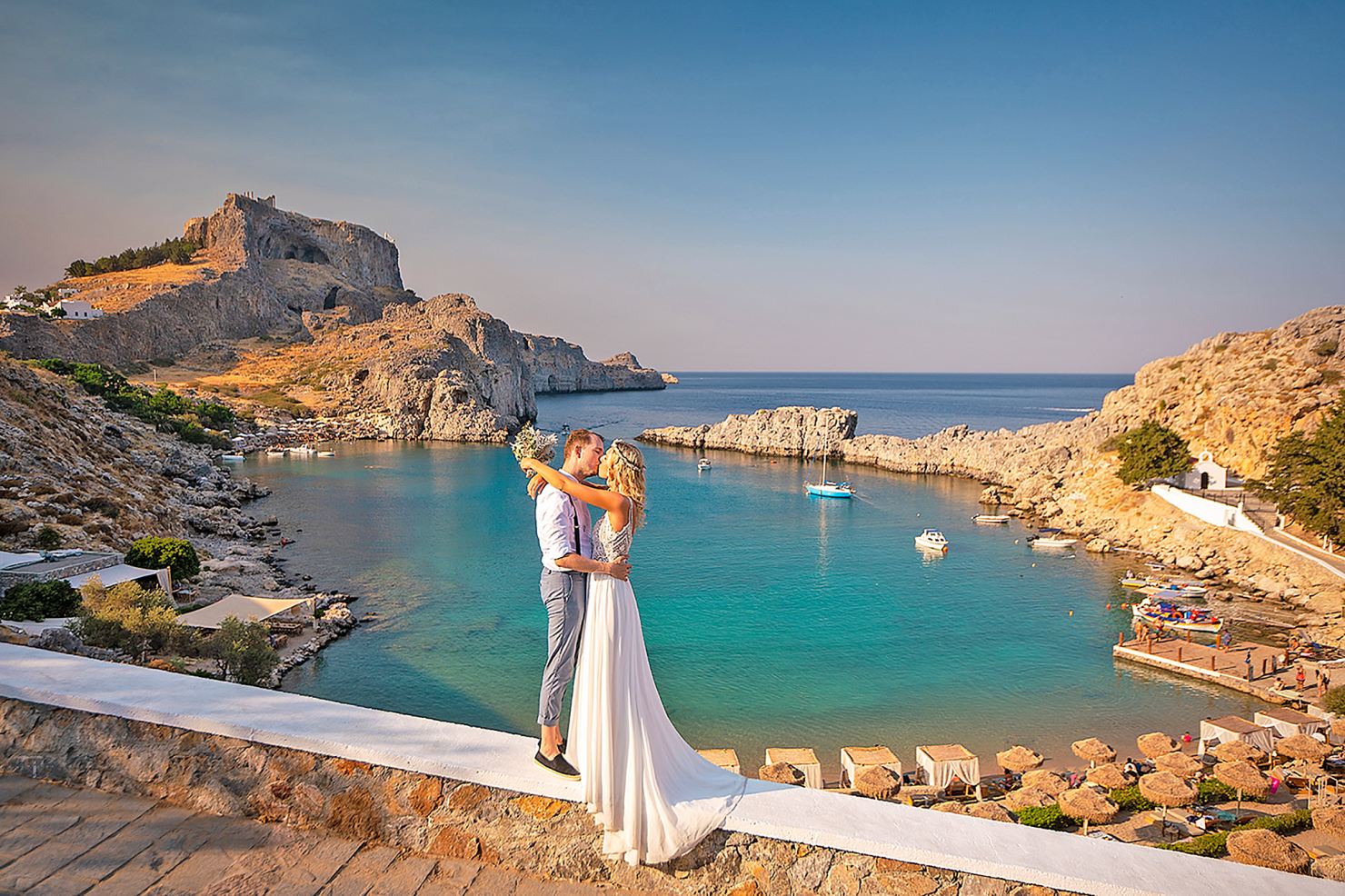 An besonderen Orten feiern, so genannte „Destination-Weddings“ wie die von Theresia und Martin auf Rhodos waren vor der Pandemie ein großer Trend, wie das Frankfurter Zukunftsinstitut analysiert hat. Bereits 2013 prognostizierten die Experten: Der Aufwand für Hochzeiten werde immer größer. Der Trend gehe zur Eventhochzeit. Medienformate wie die TV-Sendung „4 Hochzeiten und eine Traumreise“ setzten die Maßstäbe hoch.